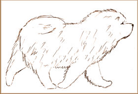 These artist illustrations are only of rough Chow Chows, for – as most exhibitors of smooth Chow Chows can testify – very often a smooth will be penalised specifically for structural faults which may well be overlooked on a rough, because of the lack of coat to hide it. This only serves to elevate the structural quality of smooths as they have to be better to compete on an even basis. Fair? No, but most certainly to the benefit of those who then go on to use those smooths of better structure, to bring improvement to their breeding program.